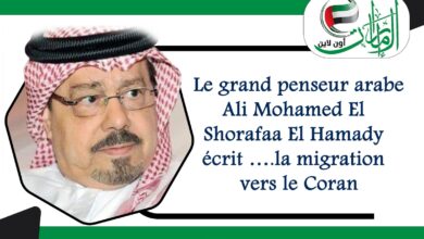 Le grand penseur arabe Ali Mohamed El Shorafaa El Hamady écrit ….la migration vers le Coran