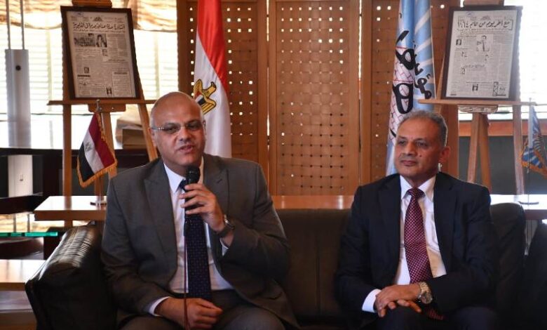 جاء ذلك خلال استقبال الدكتور محمد فايز فرحات رئيس مجلس إدارة مؤسسة الأهرام للمهندس أيمن عطيه محافظ القليوبية بمقر مؤسسة الأهرام لبحث سبل التعاون بين الجانبين.