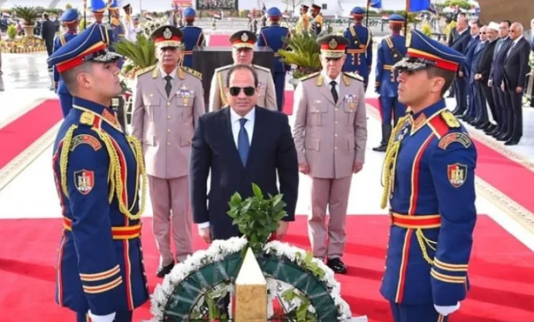 الرئيس السيسي يضع أكاليل الزهور على قبر الجندى المجهول وعبد الناصر والسادات