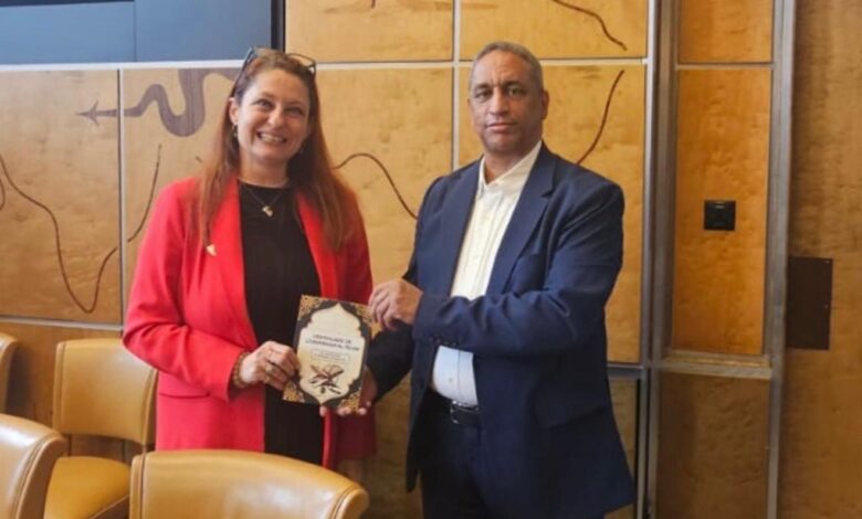 اهداء مؤلفات المفكر الكبير علي الشرفاء الحمادي على شخصيات دولية بارزة في ندوة التآخي بجامعة الأمم المتحدة