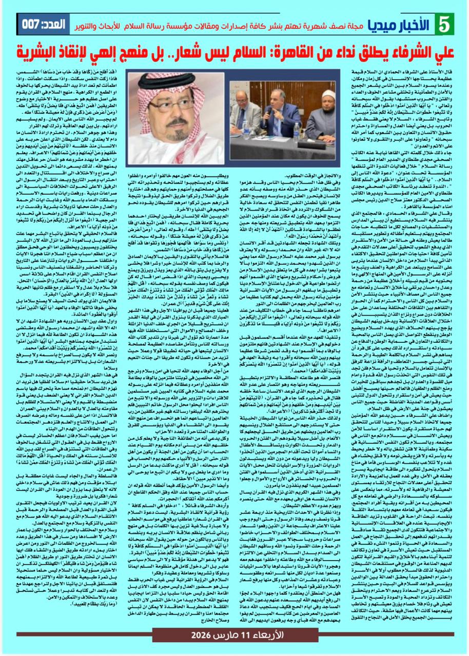 – على الشرفاء يطلق نداء من القاهرة: السلام ليس شعارًا.. بل منهج إلهي لإنقاذ البشرية.