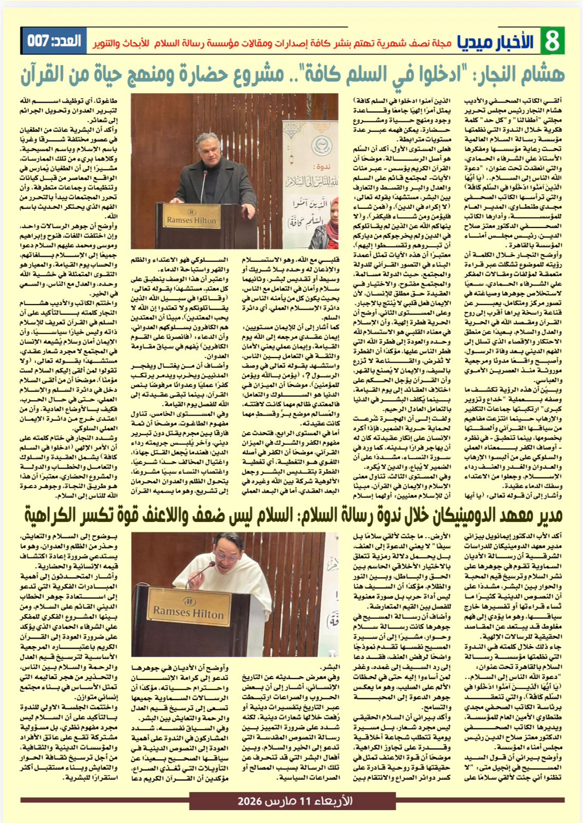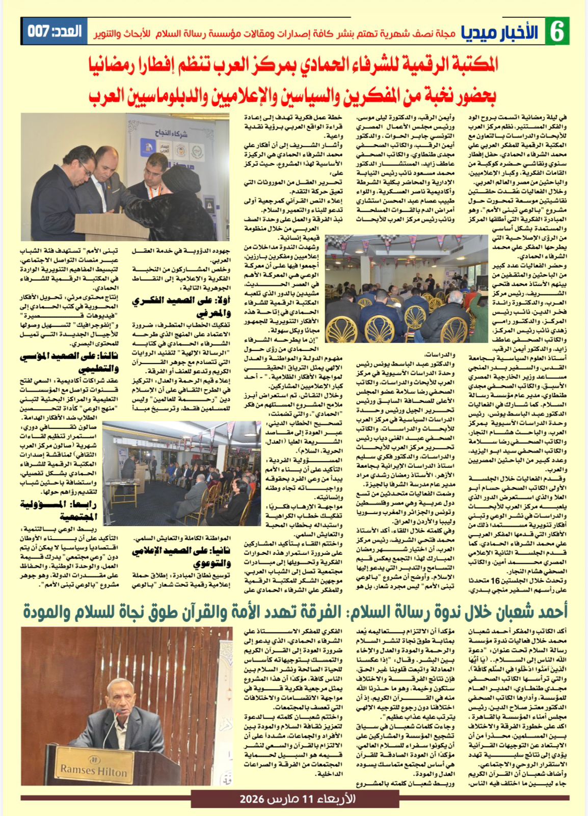 صدر العدد السابع من مجلة الأخبار ميديا اليوم الأربعاء 11 من مارس 2026
