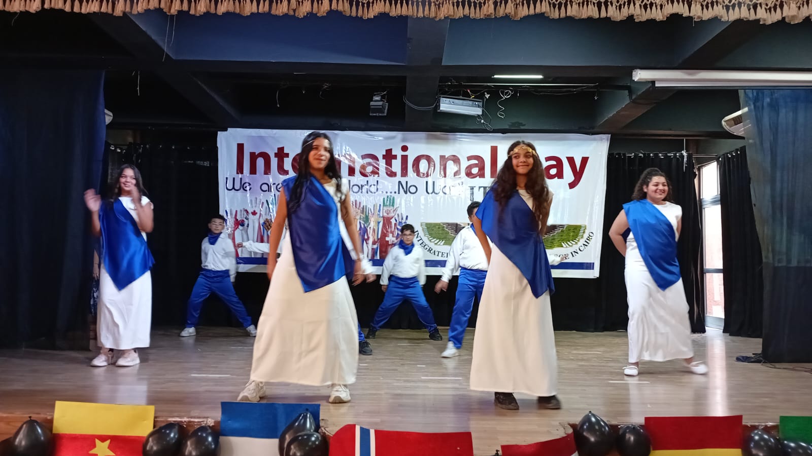 استهلت الفعاليات بكلمة ترحيبية ألقتها مديرة المدرسة، هبة الدهشان، أعقبتها عزف السلام الوطني. تلاها عروض فنية متنوعة جسدت ثقافات دول مختلفة، حيث قدمت مرحلتا KG1 وKG2 عرضًا عن دولة البرتغال، فيما جسد الصف الأول والثالث الابتدائي أجواء البرازيل. كما أبدع الصفان الثالث والرابع الابتدائي في تقديم دولة جنوب إفريقيا، وعرض الصف الخامس الابتدائي دولة لبنان، واختتم الصف السادس الابتدائي الفقرات بعرض عن دولة اليونان.