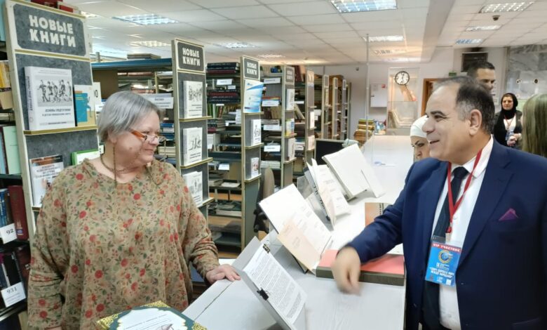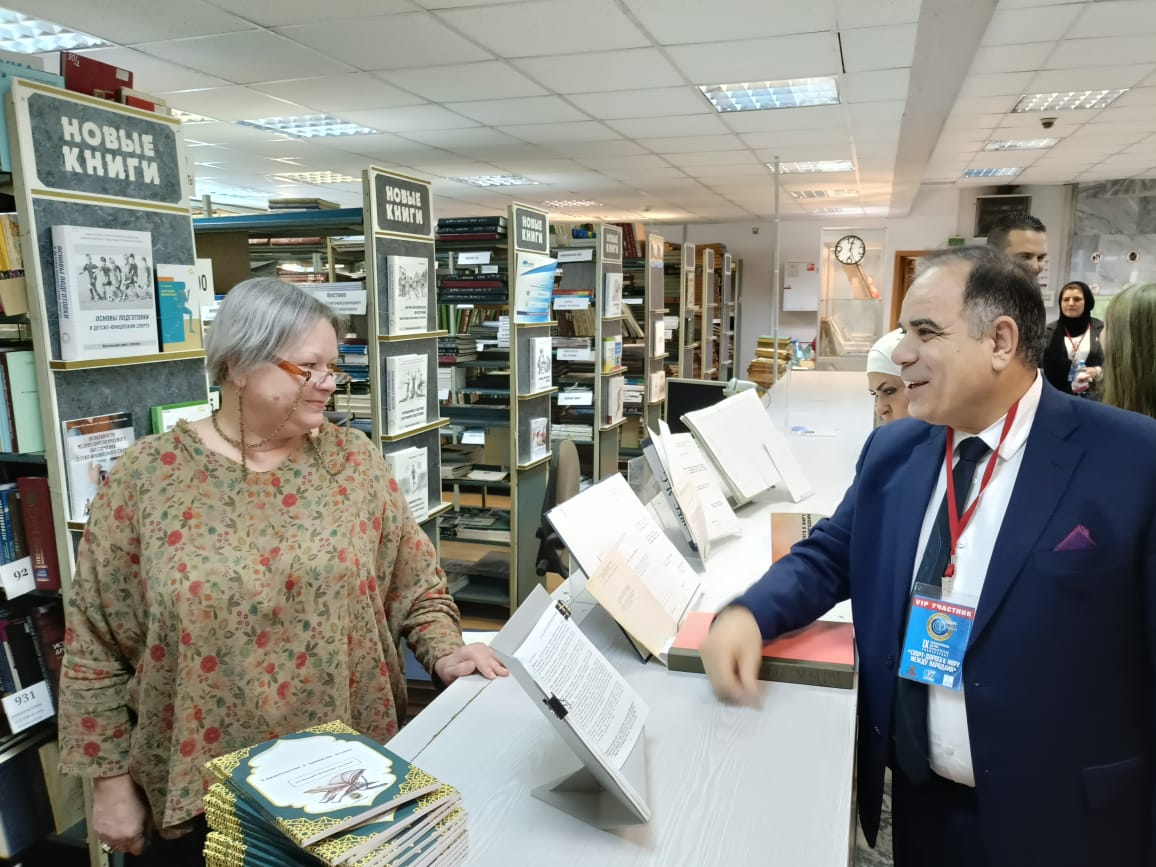 أهدى وفد مؤسسة رسالة السلام العالمية المكتبة الرئيسية لجامعة موسكو الاتحادية عدد من مؤلفات المفكر العربي الكبير علي الشرفاء الحمادي، المترجمة إلى اللغة الروسية، منها كتاب شرعة الله ومنهاجه ووثيقة الدخول في الإسلام.