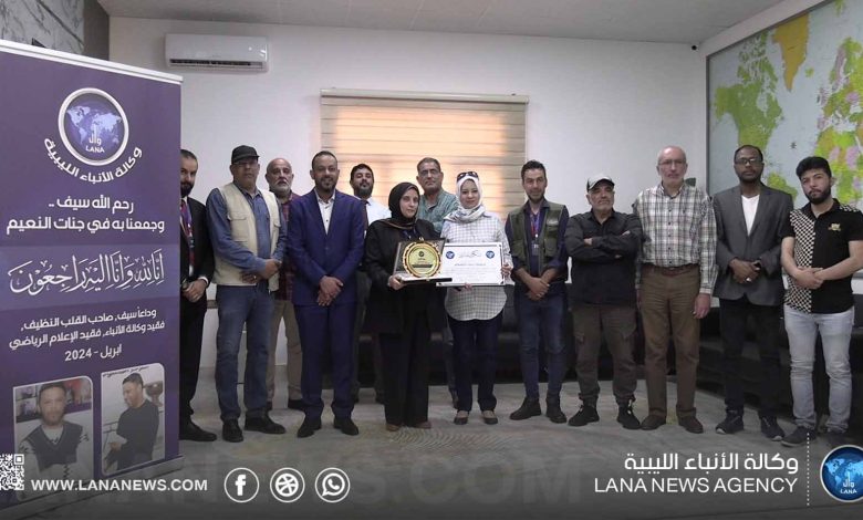 واختتمت مراسم التكريم بتقديم المدير العام شهادة تقدير ودرع التميز، للصحفية سليمة الخفيفي، تقديراً وعرفاناً من الوكالة لجهودها ومثابرتها وتفانيها في العمل الصحفي. (الأنباء الليبية)