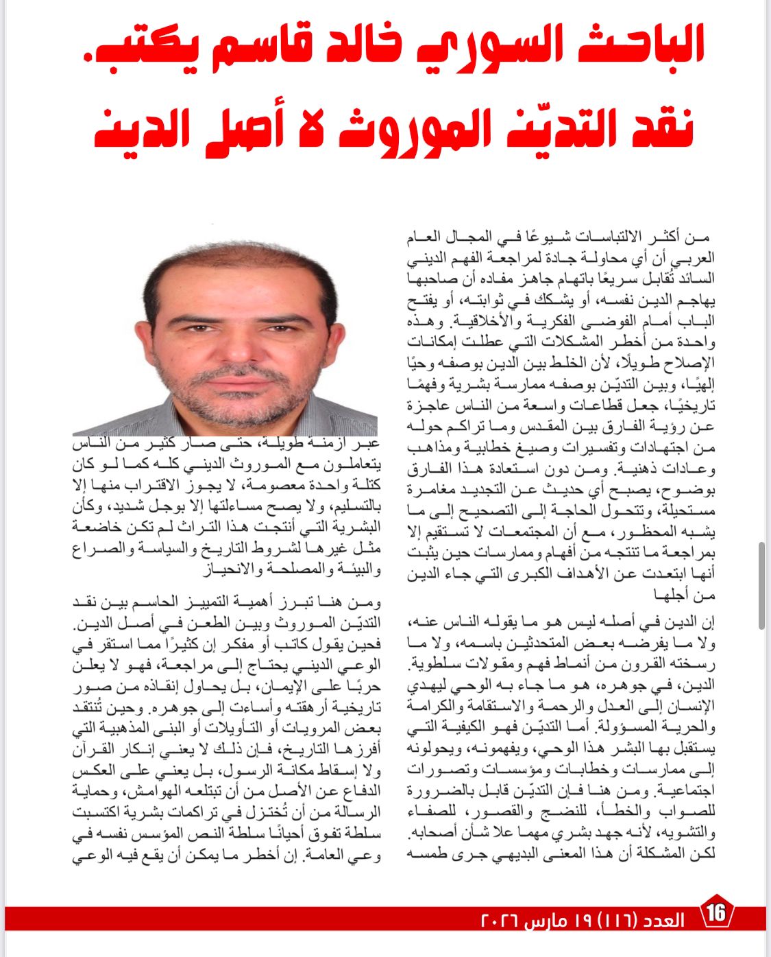 ويفصل مقال «نقد التديّن الموروث لا أصل الدين»