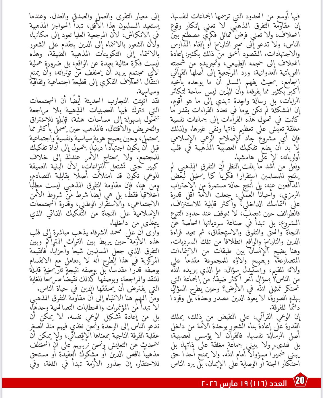 فيما يتناول مقال «الوعي القرآني طريق مقاومة التفرّق المذهبي»